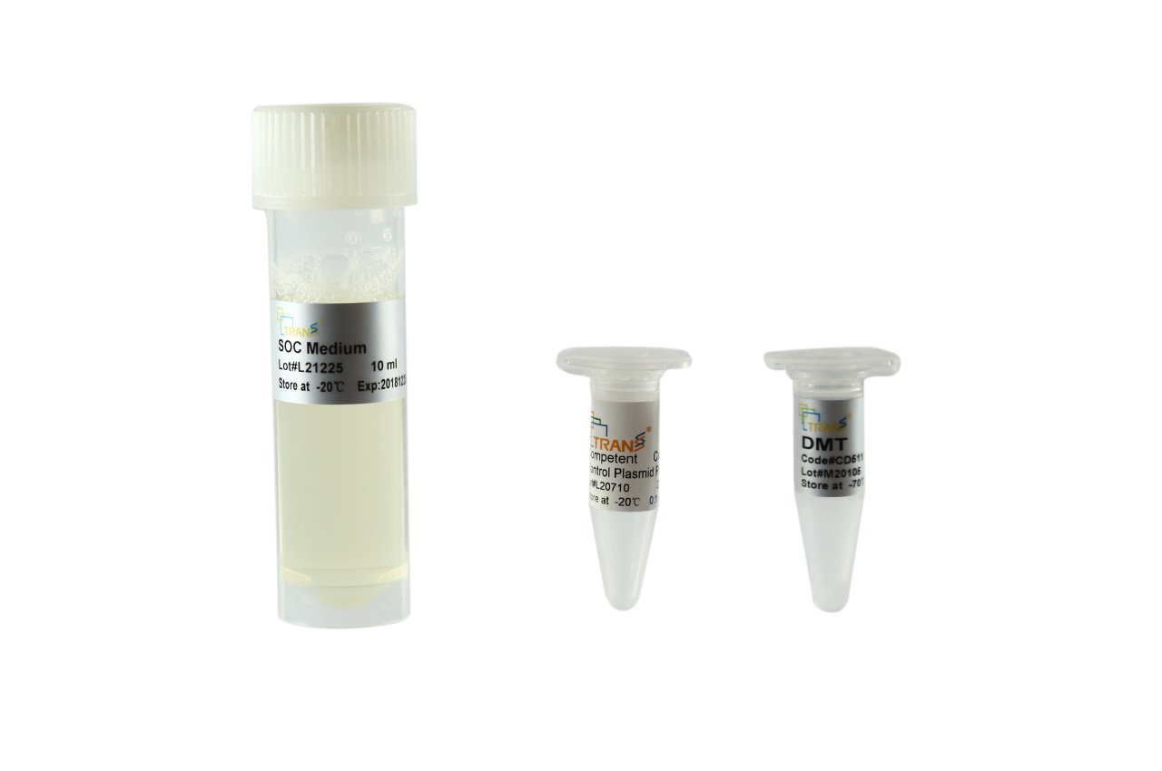 (1) 體內(nèi)降解甲基化質(zhì)粒模板;(2) 具有T1,T5噬菌體抗性;(3) 使用pUC19質(zhì)粒DNA檢測(cè),轉(zhuǎn)化效率高達(dá)108 cfu/μg DNA以上。