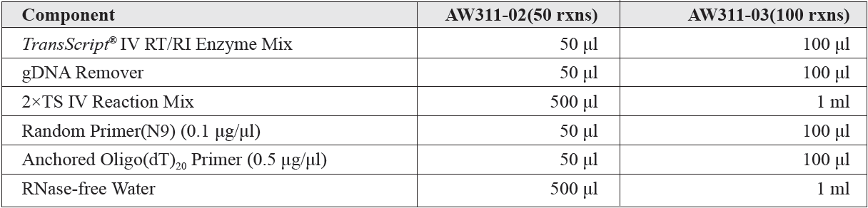 TransScript? IV One-Step gDNA Removal and cDNA Synthesis SuperMix