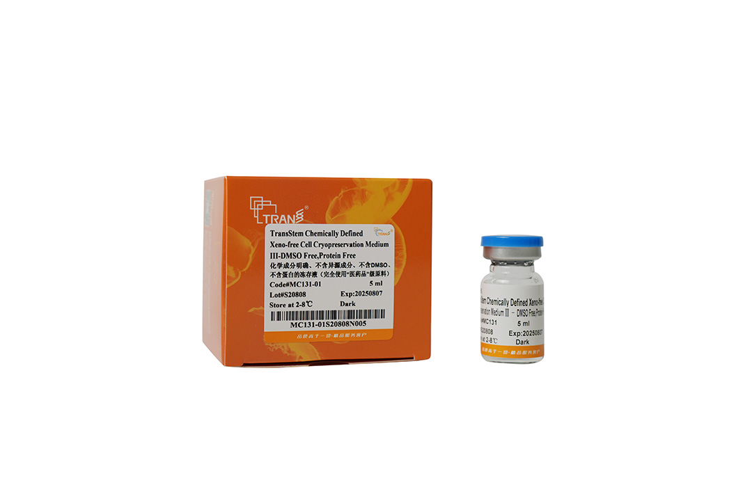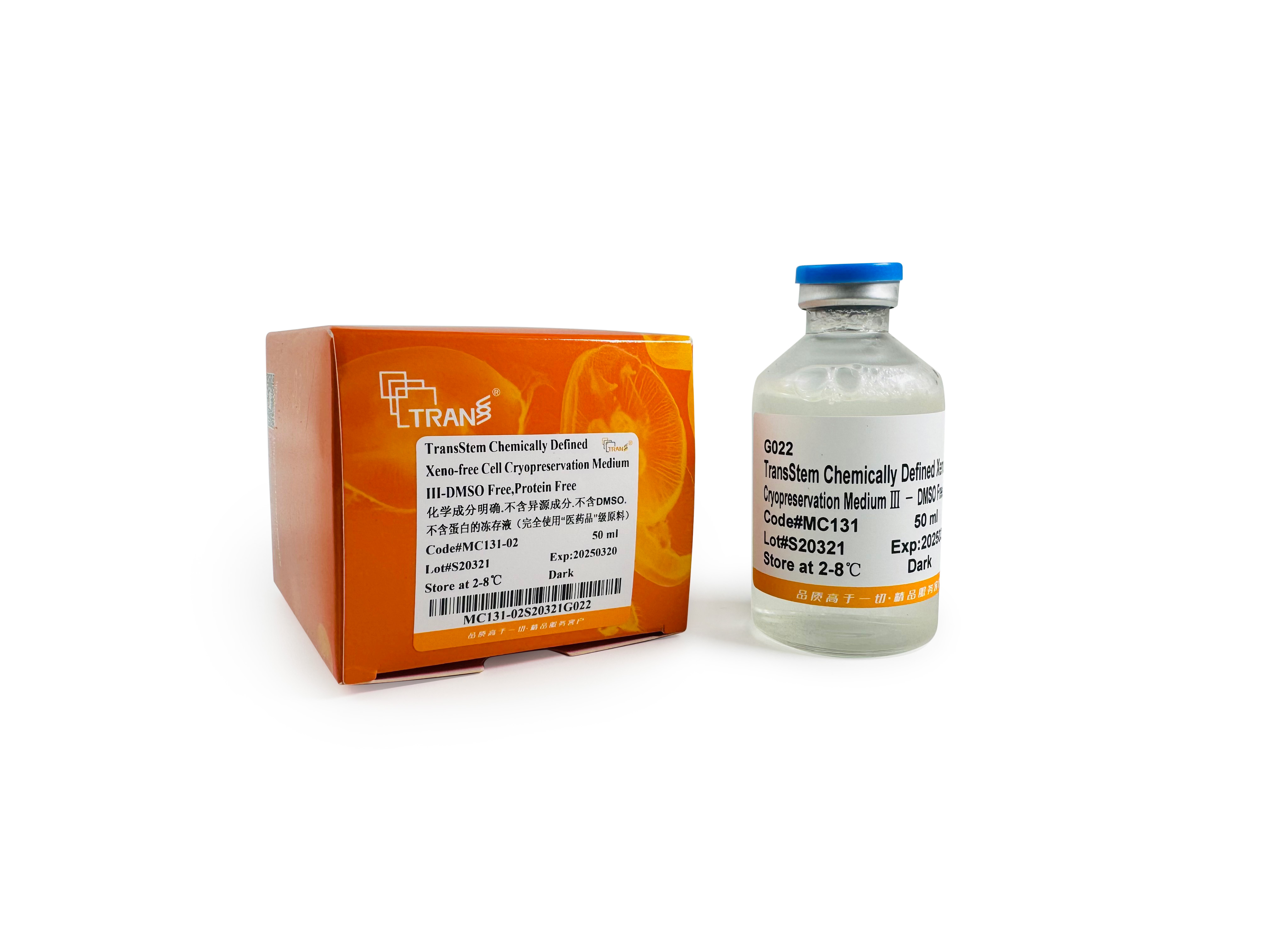 TransStem?Chemically Defined Xeno-free Cell Cryopreservation Medium III—DMSO Free,Protein Free 是一種化學(xué)成分明確、無(wú)動(dòng)物源性成分、不含二甲基亞砜(DMSO) 、不含蛋白成分、完全使用“醫(yī)藥品”級(jí)原料的即用型細(xì)胞凍存液。該產(chǎn)品已完成毒性實(shí)驗(yàn),可用作細(xì)胞藥物的藥用輔料,通用于各種細(xì)胞類型,包括間充質(zhì)干細(xì)胞,淋巴細(xì)胞等。該產(chǎn)品穩(wěn)定性好,能有效提高各類細(xì)胞復(fù)蘇活率。使用該產(chǎn)品凍存細(xì)胞可直接存放于-80℃冰箱凍存,無(wú)需經(jīng)過(guò)費(fèi)時(shí)的程序降溫過(guò)程。
