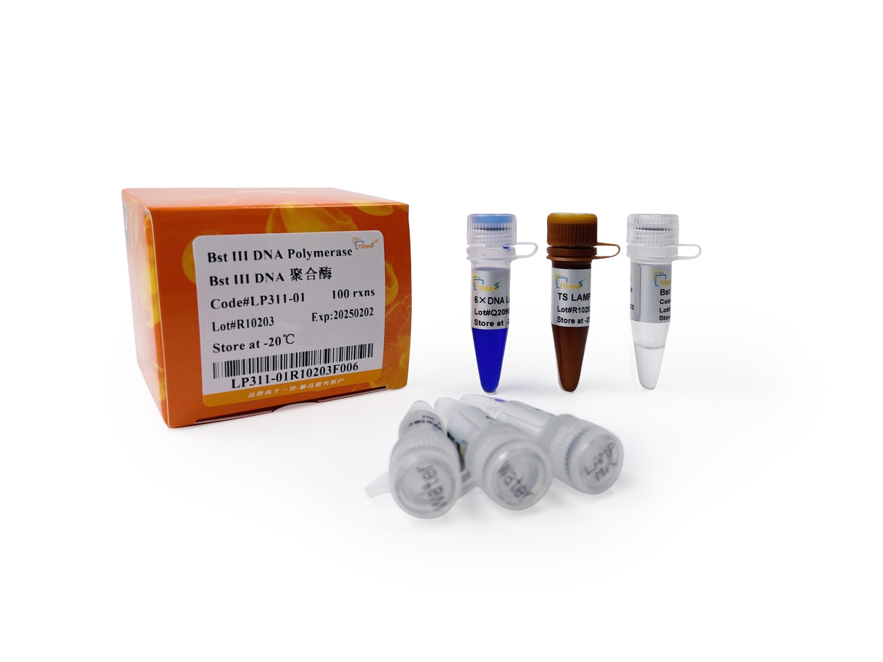 本產(chǎn)品包含Bst III DNA聚合酶、5×LAMP Reaction Mix、熒光染料TS LAMP Green,只需自備模板、引物。其中Bst III為Bst II DNA聚合酶的升級版,可以進(jìn)行以DNA或RNA為模板的LAMP反應(yīng),用于RT-LAMP反應(yīng)時不建議再加入反轉(zhuǎn)錄酶。5×LAMP Reaction Mix為優(yōu)化的預(yù)混反應(yīng)液,已包含反應(yīng)所需的MgSO4、dNTPs等組分,無需另外加入。
