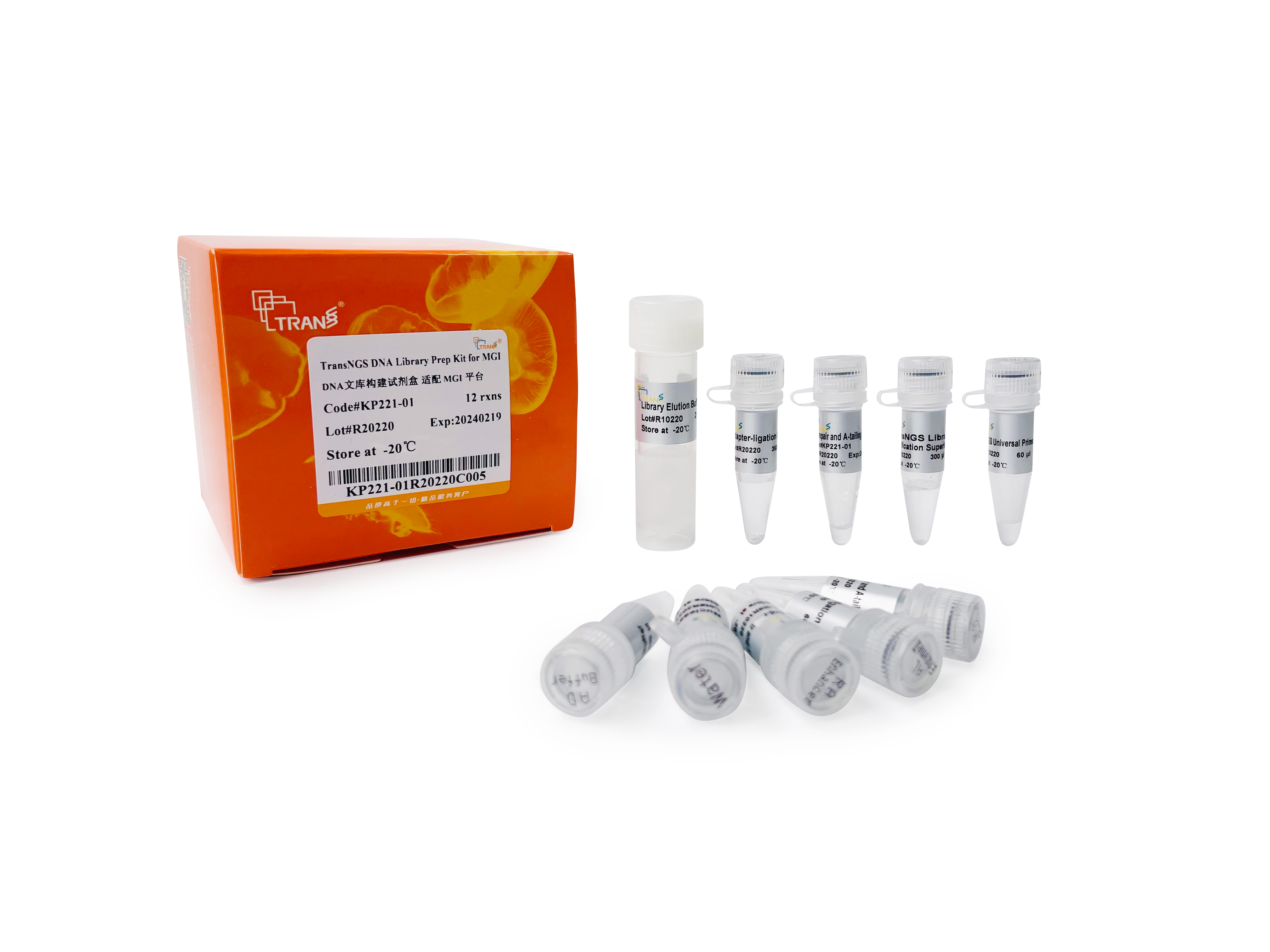 TransNGS? DNA Library Prep Kit for MGI?是針對(duì)MGI高通量測(cè)序平臺(tái)開發(fā)的,適用于將1 ng-1 μg片段化的dsDNA高效快速地構(gòu)建為測(cè)序文庫試劑盒。本試劑盒的樣本可為超聲打碎的基因組DNA 、酶切產(chǎn)物、核酸擴(kuò)增產(chǎn)物、免疫共沉淀DNA (ChIP DNA)、石蠟切片DNA (FFPE DNA)等片段化的dsDNA,并可結(jié)合外顯子或其它靶向捕獲試劑進(jìn)行外顯子測(cè)序或靶向捕獲測(cè)序。