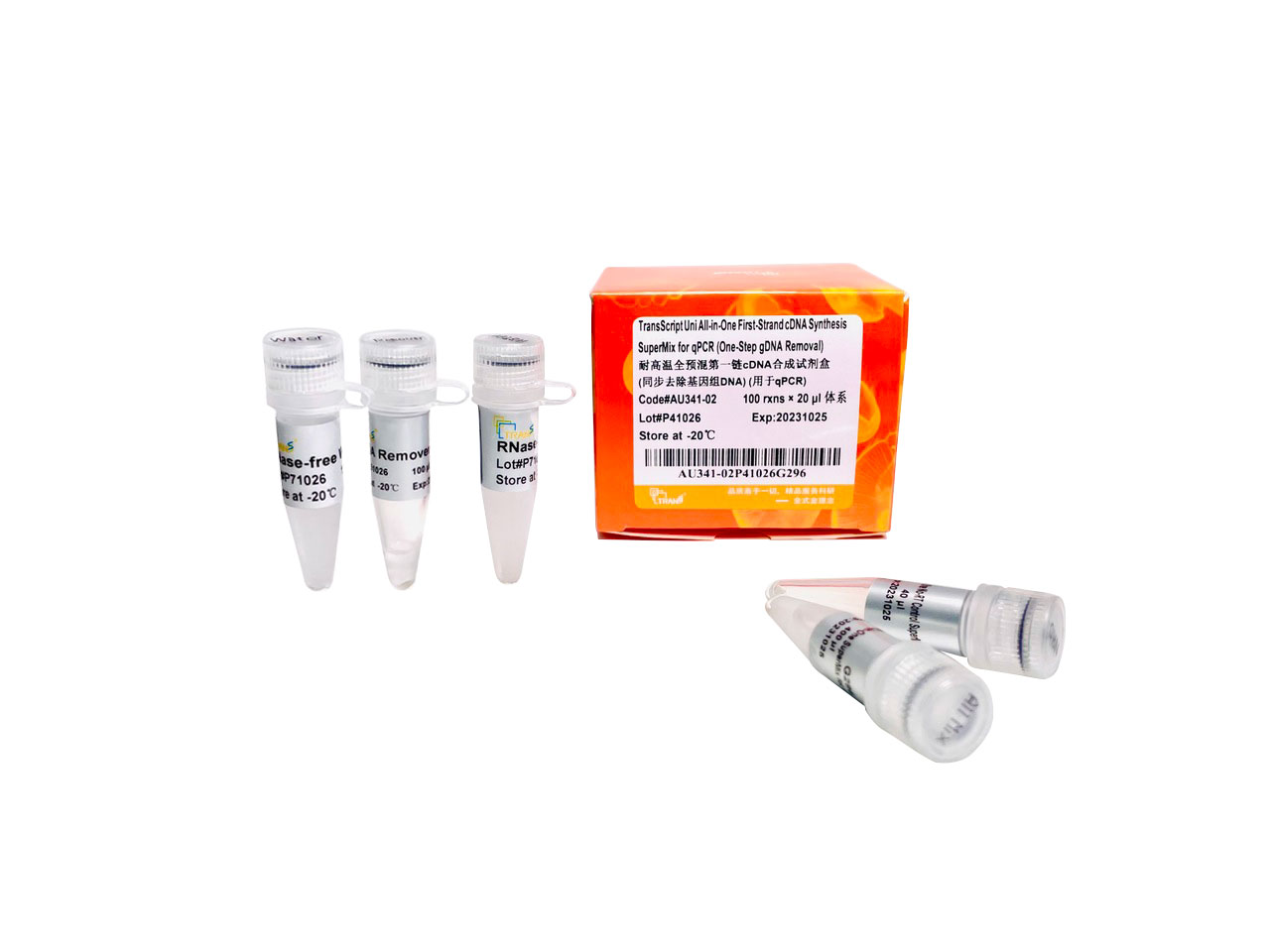 TransScript? Uni All-in-One First-Strand cDNA Synthesis SuperMix for qPCR (One-Step gDNA Removal)包含反轉(zhuǎn)錄反應(yīng)所需的全部成分(TransScript? Uni RT, RNase Inhibitor, Anchored Oligo(dT)20 Primer, Random Primer(N9), dNTPs, Buffer),可在同一管反應(yīng)中實現(xiàn)cDNA 合成和去除基因組DNA。反應(yīng)時,只需加入5×All-in-One Reaction Mix for qPCR、TransScript? Uni All-in-One Enzyme Mix、模板RNA和水,在42℃-65℃條件下即可高效地合成第一鏈cDNA,同時去除RNA模板中殘留的基因組DNA 。另配有20×No RT Control Mix,用于配制無反轉(zhuǎn)錄酶的對照,判斷qPCR模板是否來自cDNA。該產(chǎn)品操作簡便,降低操作過程中的污染機率。cDNA產(chǎn)物只適用于qPCR,不適用于常規(guī)PCR。