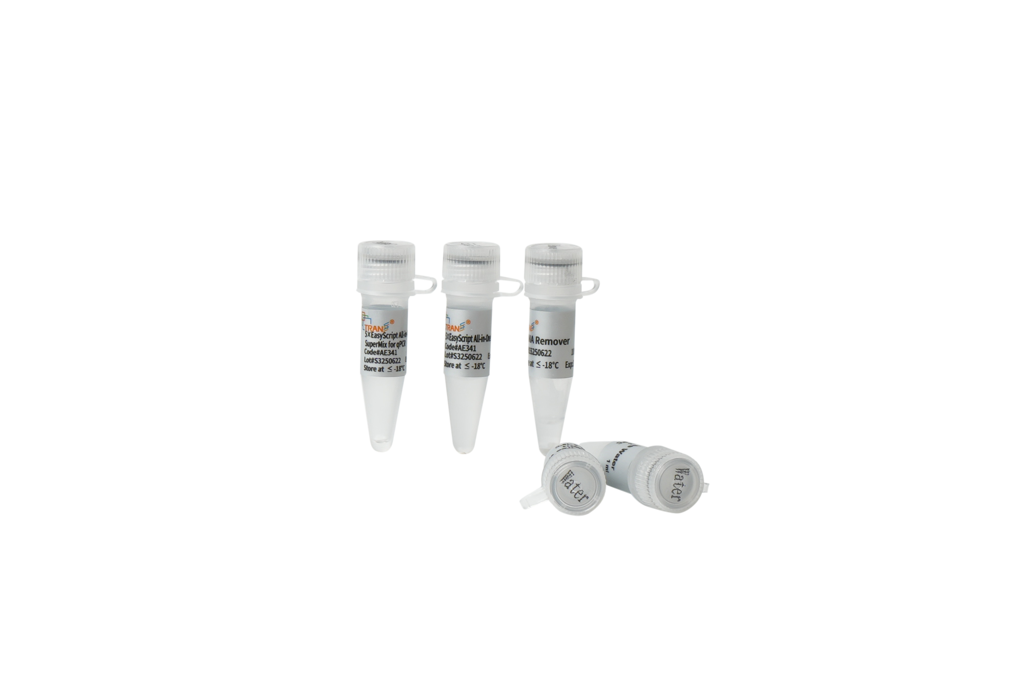 本產品含有反轉錄反應所需的全部試劑(EasyScript? RT, RNase Inhibitor, Anchored Oligo(dT)18 Primer, Random Primer(N9), dNTPs, Buffer),濃度為5×。反應時,只需加入gDNA Remover、模板RNA和水即可高效地合成第一鏈cDNA,同時去除RNA模板中殘留的基因組DNA。另配有5×EasyScript? All-in-One No-RT Control SuperMix for qPCR,用于配制無反轉錄酶的對照,判斷qPCR模板是否來自cDNA。該產品操作簡便,降低操作過程中的污染機率。cDNA只適用于qPCR,不適用于常規(guī)PCR。