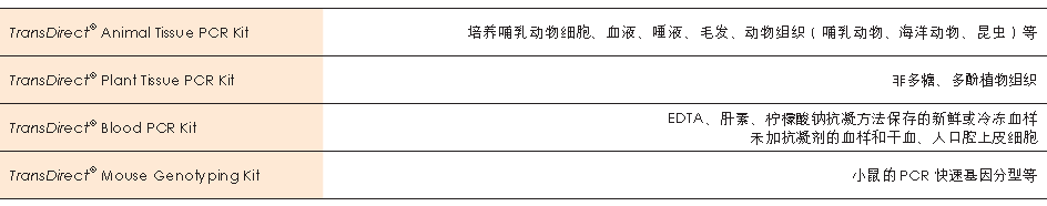 本試劑盒采用獨(dú)特的裂解緩沖液裂解組織(新鮮、凍存),所得裂解物無需純化即可作為模板,用抗抑制的2×TransDirect? PCR SuperMix (+dye) 進(jìn)行擴(kuò)增,擴(kuò)增產(chǎn)物直接點(diǎn)樣電泳。