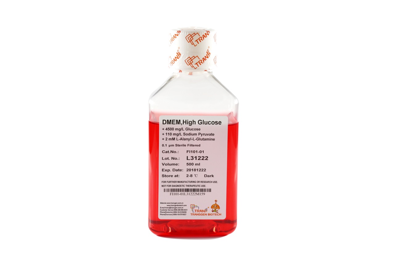 本產(chǎn)品為含酚紅的高糖培養(yǎng)基,含有碳酸氫鈉、丙酮酸鈉、L- 丙氨酰-L-谷氨酰胺和HEPES。其中L- 丙氨酰-L- 谷氨酰胺在水溶液中穩(wěn)定性高,不易形成有害的氨,是L- 谷氨酰胺的穩(wěn)定替代物。